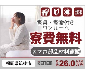 材料運搬業務:福岡で長期安定/寮費無料/徒歩圏内の職場/正社員登用制度あり 月収22.5万円