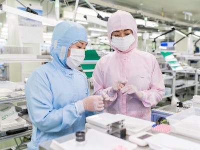 クリーンルームという衛生環境の行き届いた環境で、針の組立・包装をおこないます。