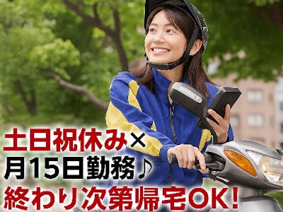 ・交通費全額支給、原付きバイク貸与、制服貸与、労災保険完備