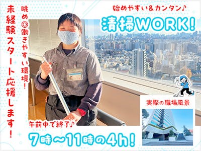 \☆積極採用中☆/【タワービルでかんたん清掃】11時には勤務終了!接客スキルは不要のモクモク作業です★Wワークやプライベートと両立しやすいお仕事♪