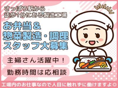 【お弁当・お惣菜の製造スタッフ】週3日~OK/さっぽろ駅から徒歩1分♪工場内でのモクモク×シンプル業務◎しゅふさん・フリーターさん活躍中の職場です!