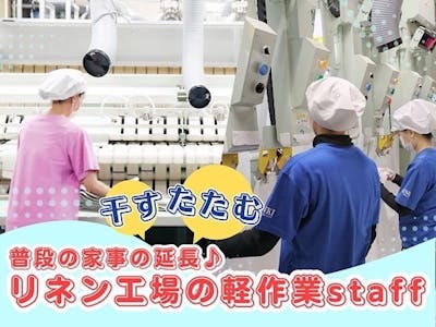 <初めて・ブランクがあっても大丈夫♪>リネン工場でコツコツ軽作業!土日休み◎幅広い年齢層のしゅふさんが活躍中!