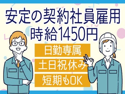 働きやすさ満点!日勤だけ×土日祝休み×時給1450円
