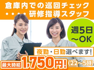 <リーダー募集⇒高時給1400円>倉庫内の安全担当!週5日×日勤・夜勤選択OK♪ミドル層・経験者活躍中!綺麗な倉庫でシンプル作業&サポート抜群◎無料送迎あり◎
