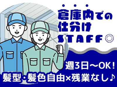 <週3日~×1日4時間勤務>未経験OK×扶養内勤務OK!【食品の仕分けSTAFF】髪型・髪色自由!