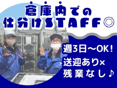 <週3日~×1日5時間勤務>未経験OK×扶養内勤務OK!【食品の仕分けSTAFF】送迎ありで通勤ラクラク♪