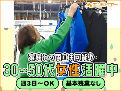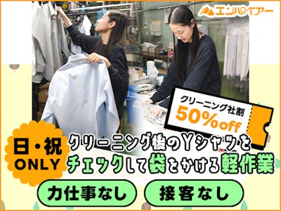 *日曜・祝日の出勤のみ*工場内にてクリーニング品の検品や包装作業をお任せ!家計応援企画・物価高に嬉しい【クリーニング代最大50%OFF】の社割付き♪