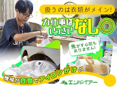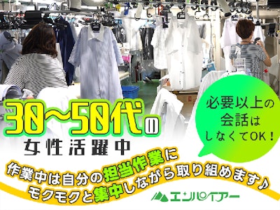 <クリーニング工場での軽作業>週3日~OK!衣類を仕上げマシンにセットするだけ◎休憩75分+小休憩で無理なく働ける環境です♪社割でクリーニング代最大半額☆