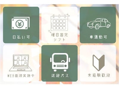 無料送迎バスあり&車・バイク通勤OKなので、近隣地域からも多数活躍中◎
