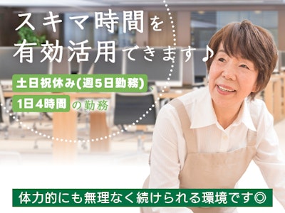 【1日4時間の短時間パート】テナントビルの日常清掃♪午前中のみ◎土日祝休みだからメリハリつけて働けます◎60代・70代の世代も活躍中♪出張面接も受付中です!