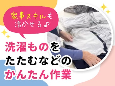 クリーニング工場での洗濯作業スタッフ/家事感覚で洗濯仕上げ◎1日4h~の時短OK♪経験不問*20~50代女性活躍中*無料の託児所もアリ!