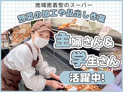 【週2日~】扶養内OK!スーパーでのお惣菜作り・パック詰め・品出し。しゅふさん多数活躍中!未経験スタートやブランクからの復帰も応援◎