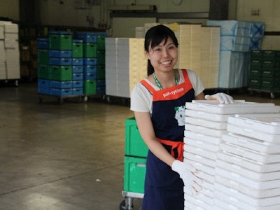帰着トラックが持ち帰ってきた空き箱を片付けたり、