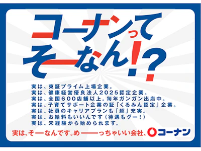 30~40代ママ活躍★平日のみも◎暮らしを彩るコーナン《売り場づくり・レジ・接客など》髪色自由・ネイルピアス◎社割&賞与あり★シフト柔軟◎家庭の事情に理解あり!