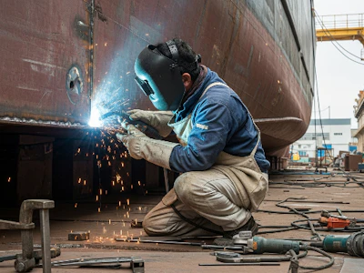 日勤のみ/土日休み/月収33万円~可能・日払い可/寮完備/資格取得可能/船舶用鋼材の溶接作業