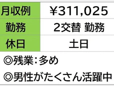 製造スタッフ 電子系の樹脂製品 2交替勤 土日休