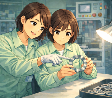 軽量部品(リング状の薄い板)の外観を検品する作業です。
