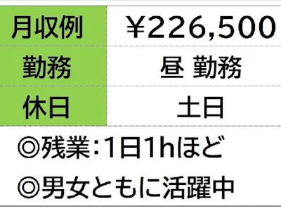 ☆月収例 226,500円♪〈所定157.5h×1200円+残業25h×1500円〉
