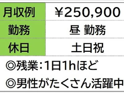 ☆月収例 250,900円♪ 【所定168h×1300円+残業20h×1625円】