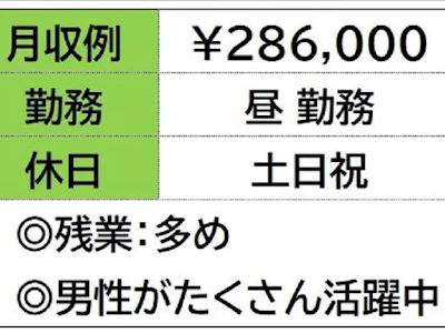 ☆月収例 286,000円♪ 【所定157.5h×1300円+残業50h×1625円】
