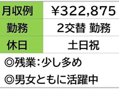 [職種名]: 半田付けスタッフ 家電部品など 2交替勤 土日休み