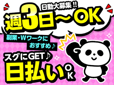 WEB登録~勤務開始までスピーディ★日払いOK!日用品等のカンタン仕分け♪髪型・色&服自由★車通勤OK!週3~OKなので家事や育児のスキマ時間で勤務できます♪