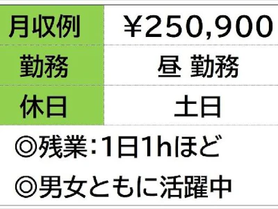 ☆月収例 250,900円♪〈所定168h×1300円+残業20h×1625円〉