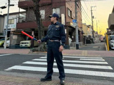 付近を通行する車両や歩行者を誘導・案内して周囲の安全を守ります。