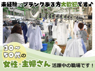 【クリーニング工場のカンタン作業】週3日~OK!衣類を仕上げマシンにセットするだけ◎休憩75分+小休憩で無理なく働ける環境です♪社割でクリーニング代が最大半額に