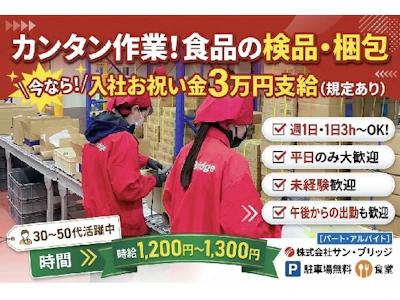 - 時給1300円~ 基本時給1300円 ※交通費全額支給(規定あり) 【月収例】22.4万円(20日勤務+残業10h) ※こちらの求人は日払いまたは週払いの求人です 【交通費】 交通費支給あり 規定あり