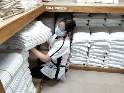 回収したリネンをアイテム毎に仕分ける作業を行います!
