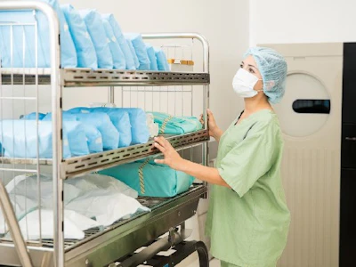 病院の中央材料室で医療器材の