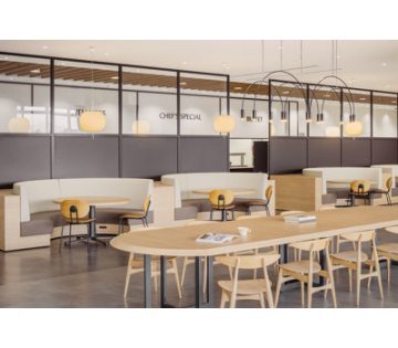 快適な食堂:無料ドリンクサーバー、冷蔵庫、電子レンジ完備。