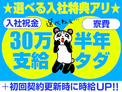 【お休みたっぷり!福利厚生もしっかり!!契約更新後に時給もUP!今なら選べる入社特典付き!】