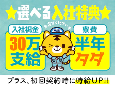 今なら選べる入社特典付き!月収24万円以上可即入寮OK!最短面接から1週間以内に入社OK!